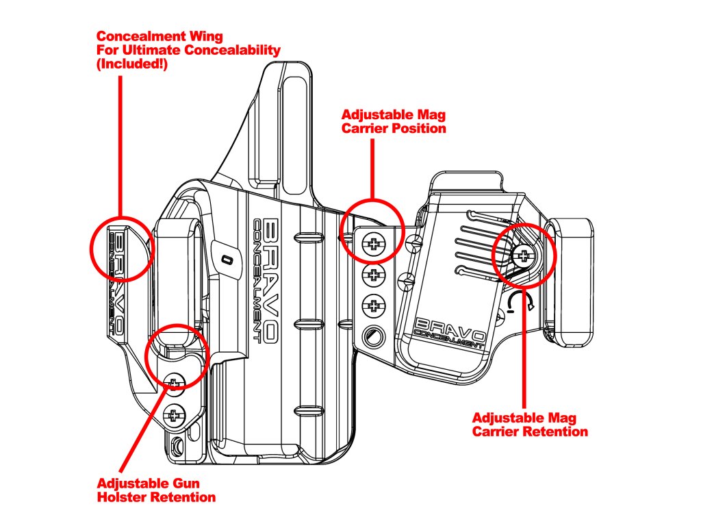 Pouzdro LINKed je navrženo tak, aby bylo nastavitelné pro vaše pohodlí, a umožňuje vám mít druhý zásobník na dosah ruky. Díky integraci pouzdra na zásobník s patentovanou technologií Torsion, kterou najdete u pouzder na zbraně IWB, je druhý zásobník nakloněn pohodlně blíže k tělu. Chcete ještě více minimalizovat printing? Přidejte dráp na druhou stranu pouzdra - opět pomocí jednoduchého šroubového upevnění.