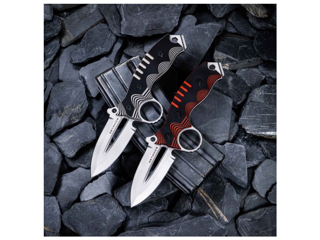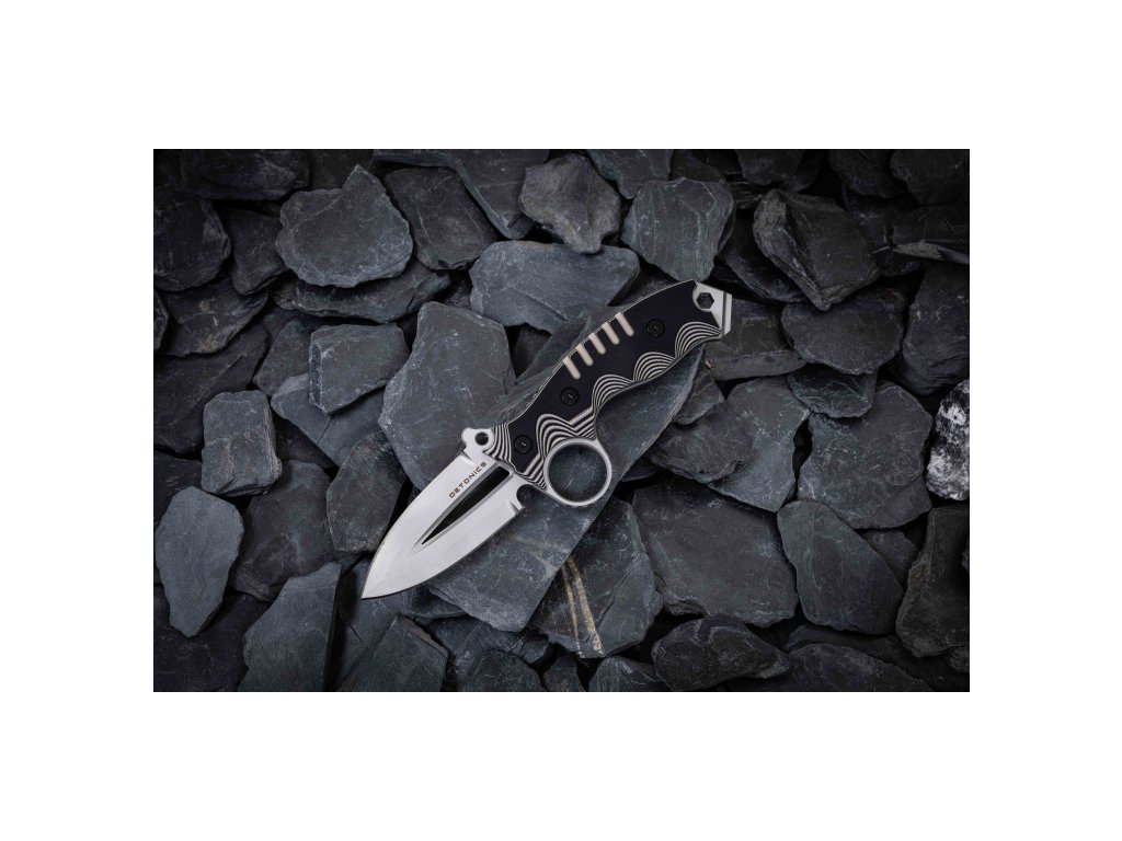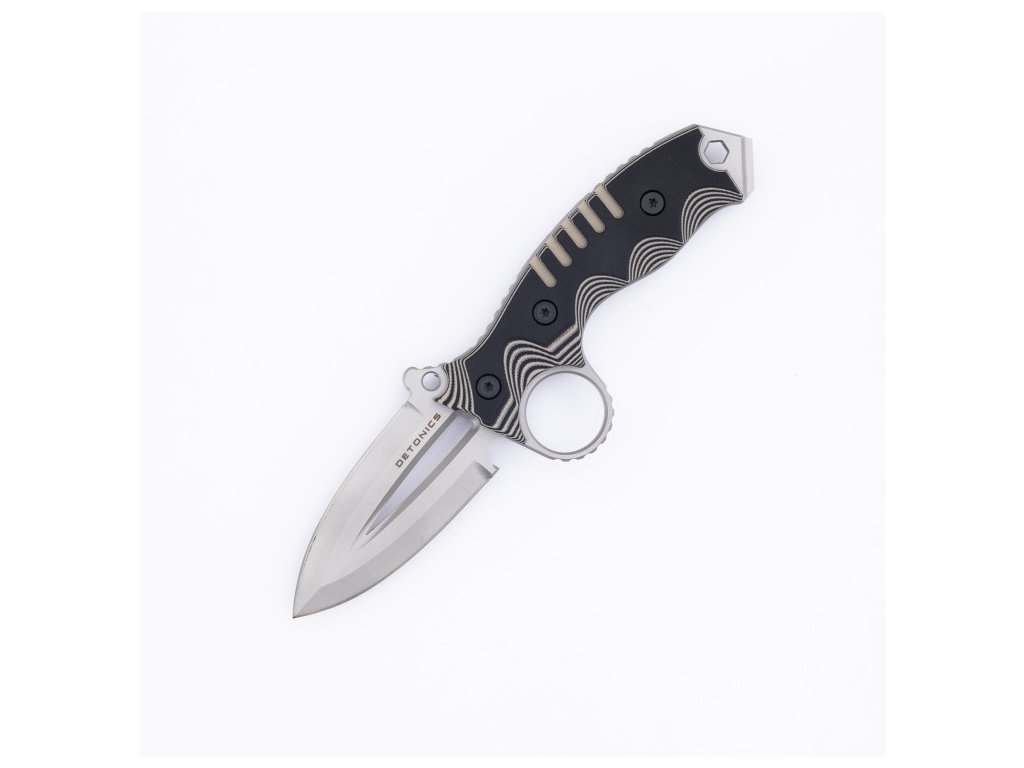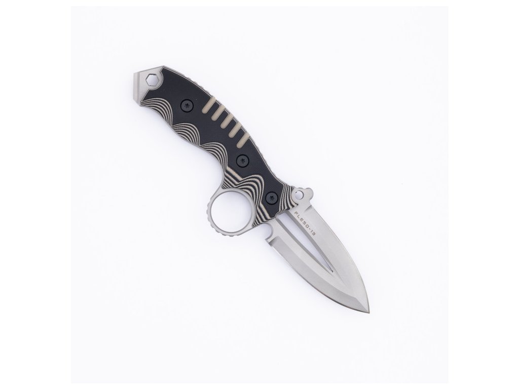 Originální anatomická rukojeť je vyfrézována z tlakově lisovaného laminátu G10 a k noži je přišroubována robustními Torx šrouby. Design rukojeti zajišťuje velmi pevný a bezpečný úchop. Díky integrovanému oku pro ukazováček je velmi nesnadné nůž v boji vyrazit z ruky