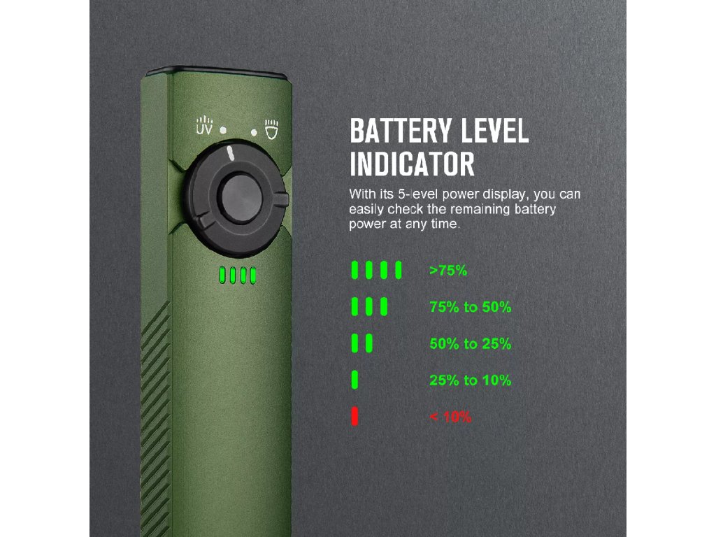 Olight Arkfeld UV CW je spolehlivým a elegantním společníkem pro každodenní použití. S její všestranností a výkonem se stanete připravenými na různé situace, kdy potřebujete světlo a detekci UV světla.