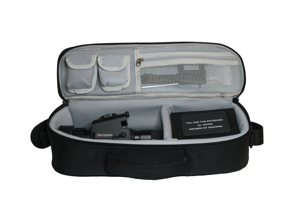 Termovizní zaměřovač Senopex A3 má jádro o rozlišení 384 × 288px s citlivostí < 35mk a 1024 × 768px OLED displej, kvalitní 35mm čočku. Tyto parametry zajišťují jasný obraz v drsných podmínkách prostředí jako je tma, mlha, kouř, prach, déšť, sníh, lesní porost atd. Toto vše podporuje Váš perfektní zásah cíle při lovu, nebo ochraně majetku.